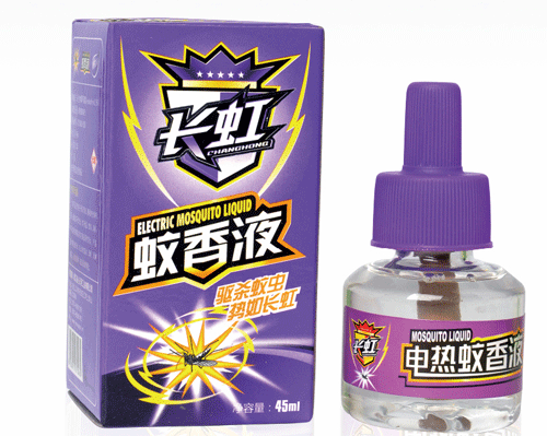 电热液体蚊香具有:无烟、无异味、无灰、无污染;使用PTC加热源安全;使用时间随心所欲,用时送电、不用时断电,使用十分方便。一瓶药剂约可连续使用300h(受PCT温度影响);无须机械设备亦可生产等优点